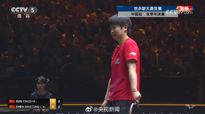 #孙颖莎4比2胜陈幸同#【#孙颖莎一口气进决赛#】今天,孙颖莎率2025WTT中国大满贯女单半决赛,先晋@孙颖莎 战胜队友@陈幸同 ,中决赛顺利晋级。满贯决赛中,孙颖莎率她将迎战@王曼昱 和申裕斌之中的先晋胜者。姑娘们加油!中决赛